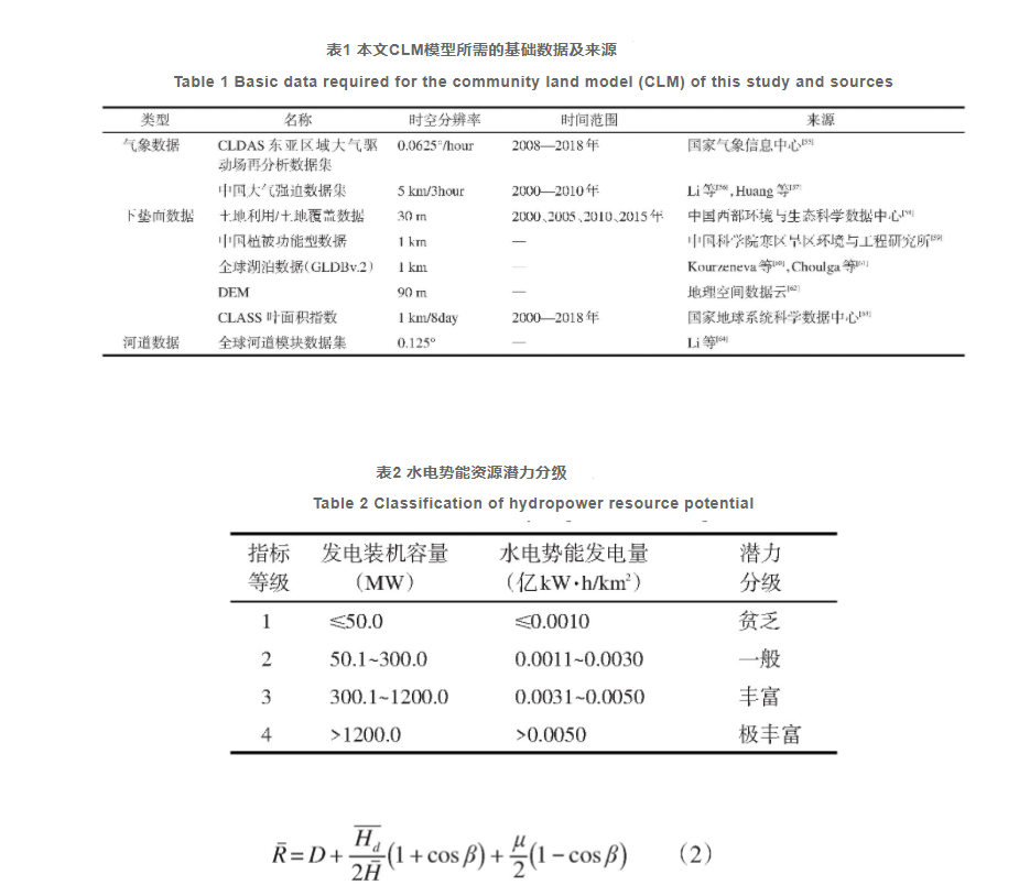 本文驅(qū)動CLM模型所用數(shù)據(jù)集如表1所示,水電勢能潛力評估的空間分辨率為1 km,時間為2000—2018年。