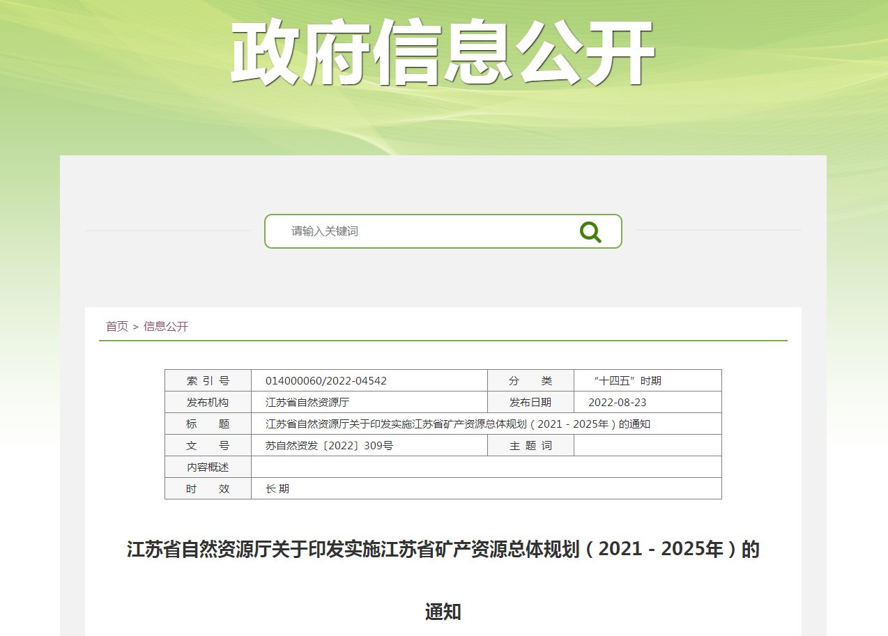 地大熱能地熱能開發(fā)利用江蘇省礦產(chǎn)資源總體規(guī)劃(2021-2025年)》(以下簡稱《規(guī)劃》)業(yè)經(jīng)自然資源部批準,并經(jīng)江蘇省政府同意,近日印發(fā)。
