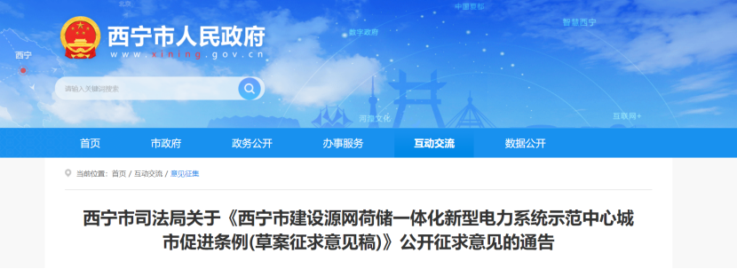 6月27日,青海西寧市司法局發(fā)布關(guān)于《西寧市建設(shè)源網(wǎng)荷儲(chǔ)一體化新型電力系統(tǒng)示范中心城市促進(jìn)條例(草案征求意見稿)》公開征求意見的通告。