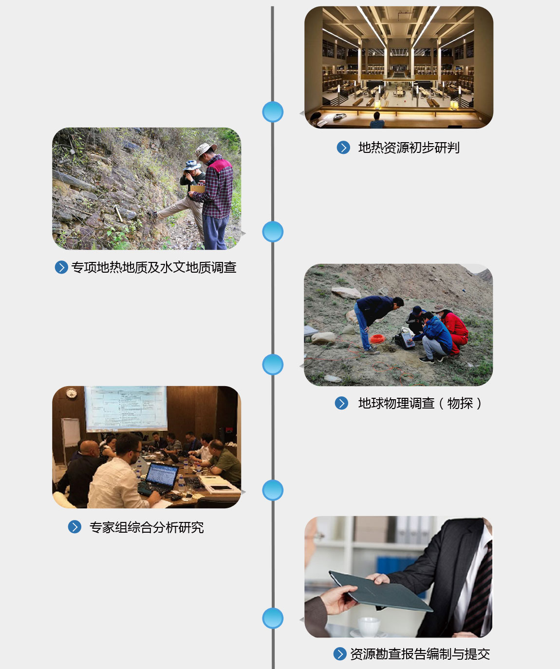 3.報告完整:憑借中國地質大學(武漢)地熱開發研究所的科研實力,我們對外輸出的勘查報告涵蓋了項目區熱儲層、熱儲蓋層、地熱流體等參數的詳細分析,從而評估資源儲量、可持續開發量,提供合理的開發意見。