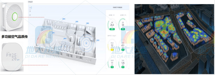 在典型大空間區域或其他人員長期密集、空氣品質要求較高部位,設置PM2.5、甲醛、VOC等室內污染物濃度監測點,當污染物濃度超標時,進行超標報警;若甲醛、VOC等濃度超標,可加大新風量,提高室內健康度,確保用戶對于室內環境問題都完全知情、定位準確、處置過程在線可控,給全民提供一個舒適的工作和學習環境。